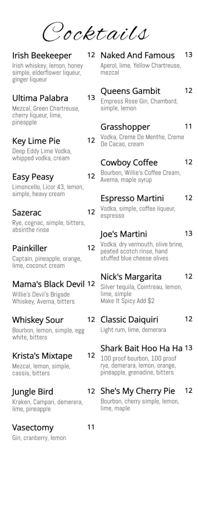 We're always coming up with new craft cocktails. Check with us on our current cocktail list and monthly specials!