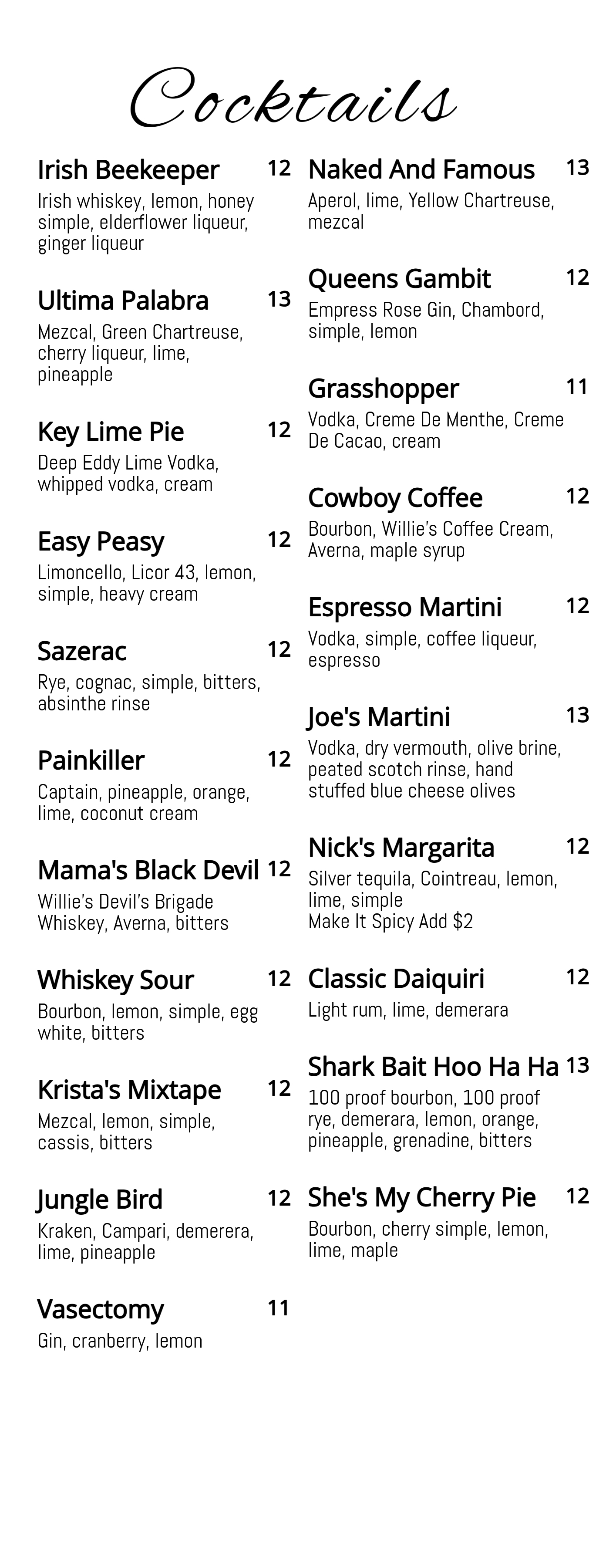 We're always coming up with new craft cocktails. Check with us on our current cocktail list and monthly specials!